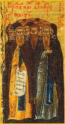 You dyed your monastic habits with your own martyrs’ blood, O blessed and holy fathers. Thus adorned you now stand with twofold crowns of glory, before Christ’s throne in the heavenly abodes.